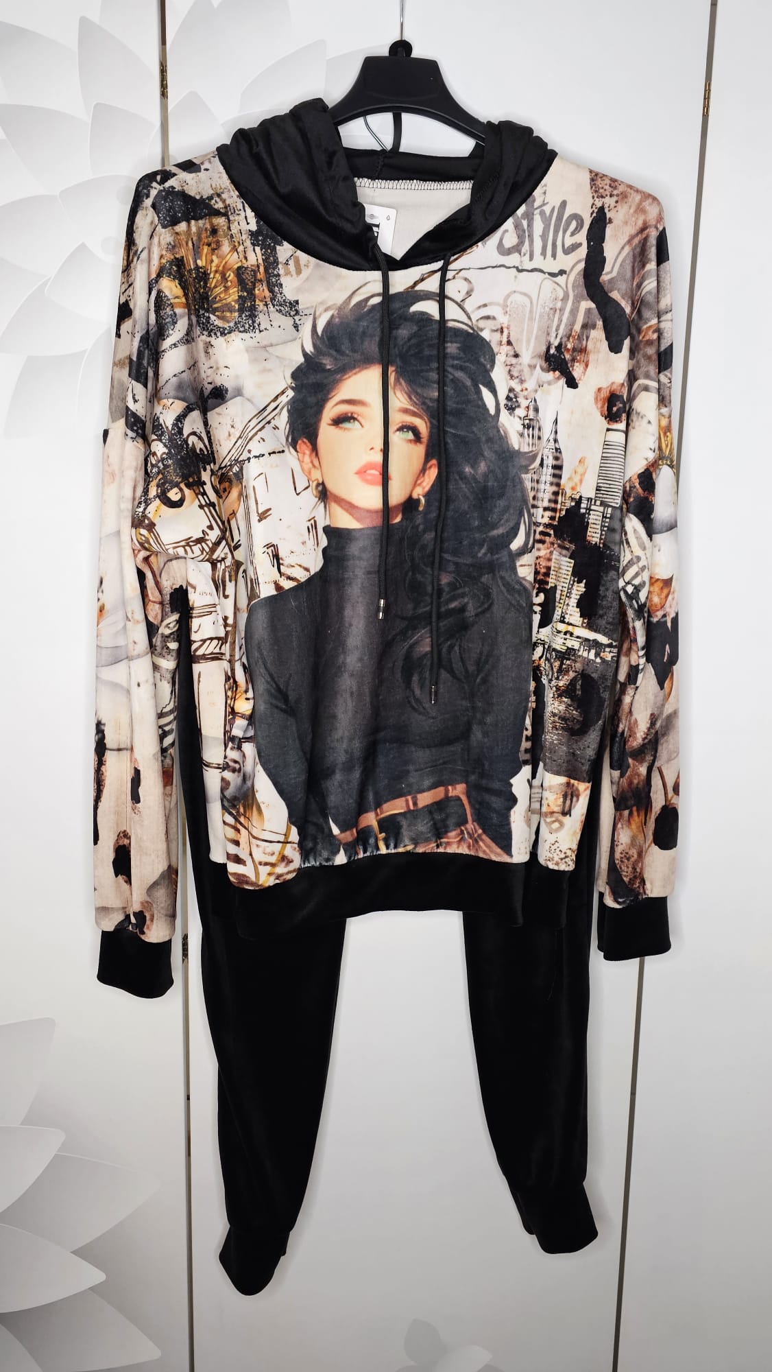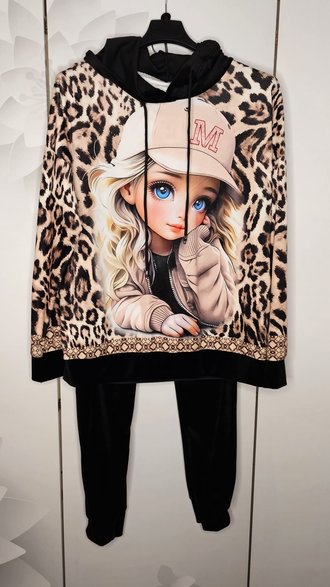 Der Anzug besteht aus zwei teile einem Kaputzenpullover und einer Hose mit Taschen.Es ist eine Einheitsgröße und passt von der größe XS-M. Die Farben und Figuren sind wie auf den Fotos zu sehen.