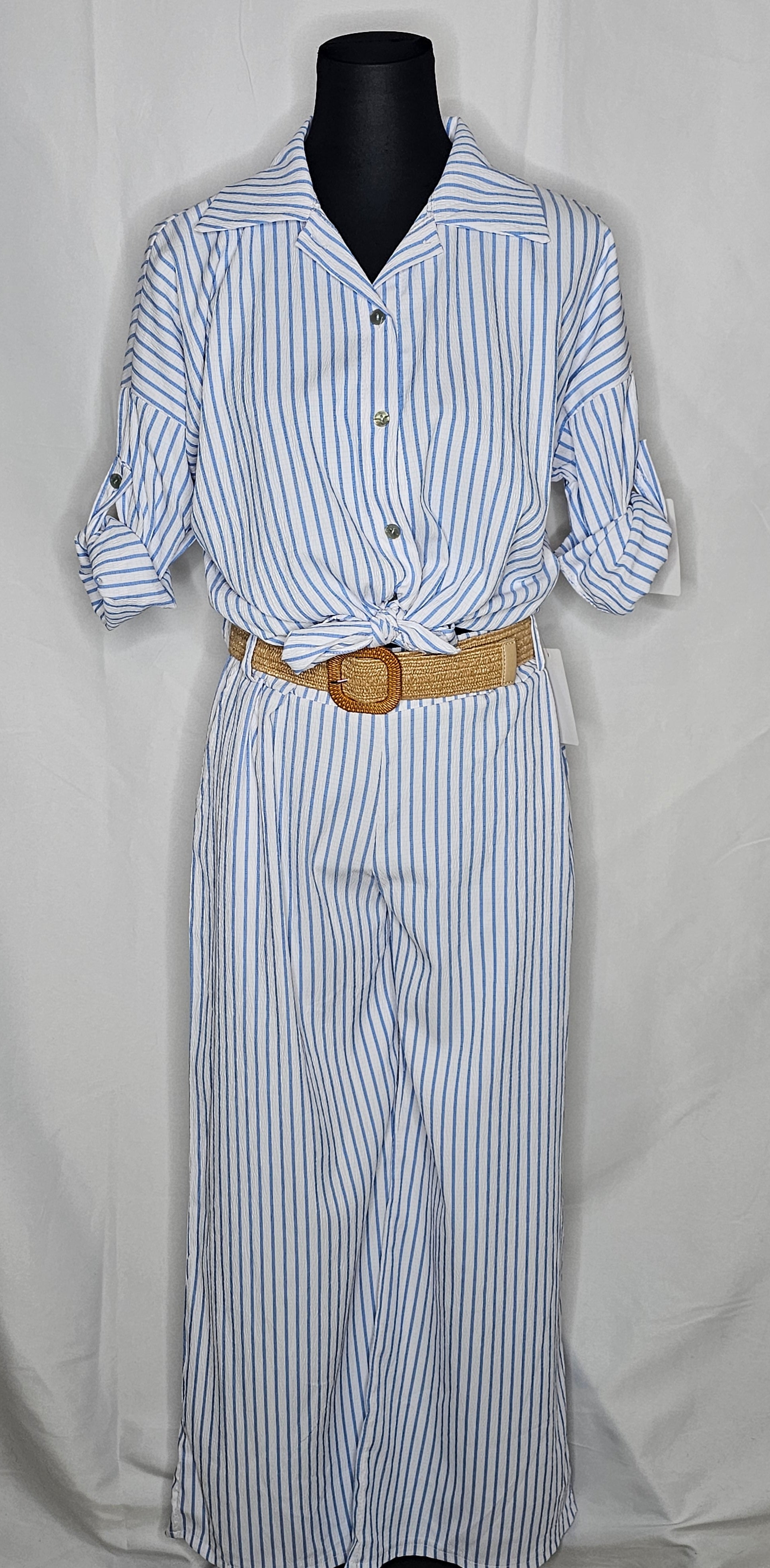 Gestreifte Frühling zweiteiler mit Gürtel (Einheitsgrösse tragbar bis L)  Damen-Zweiteiler