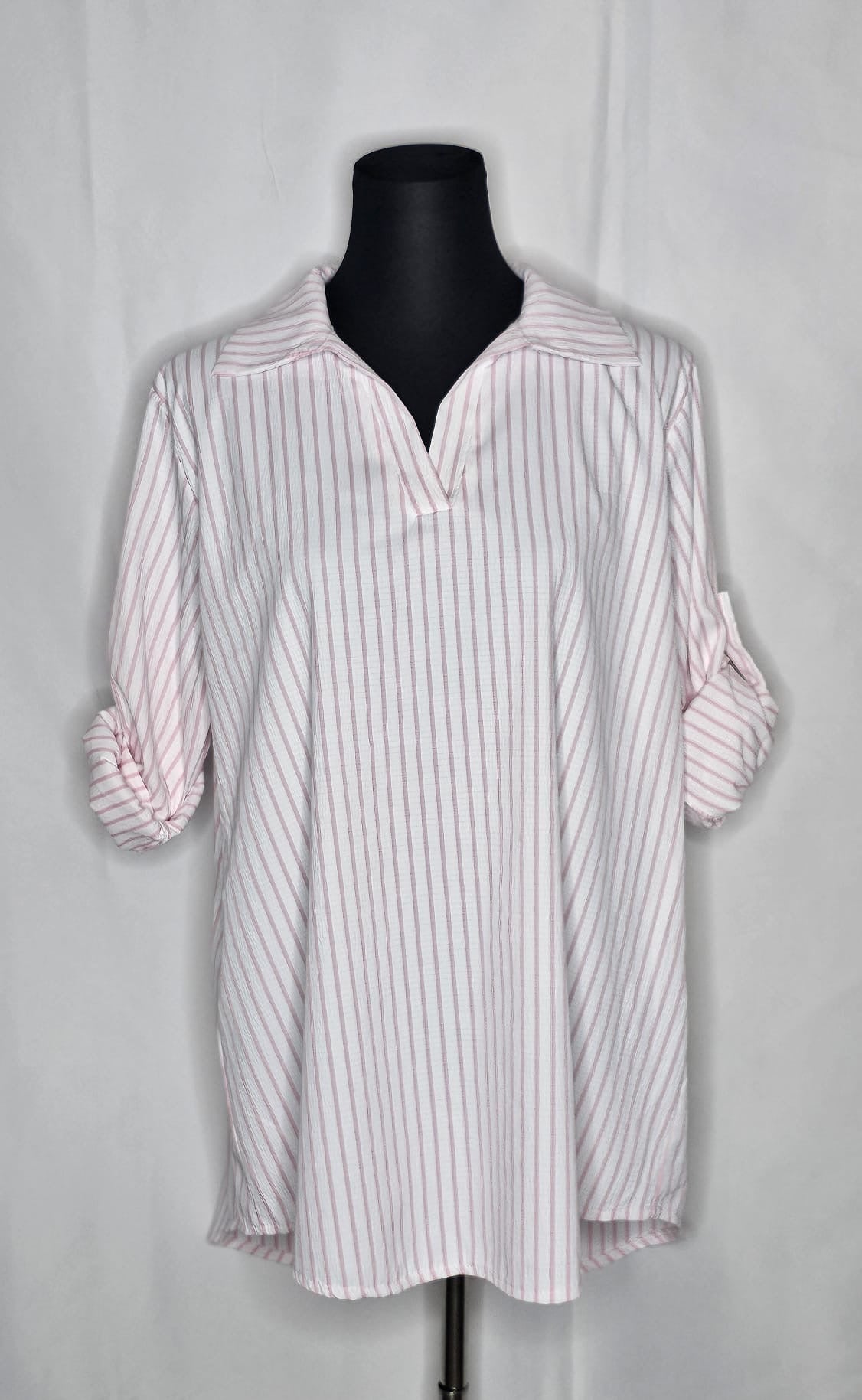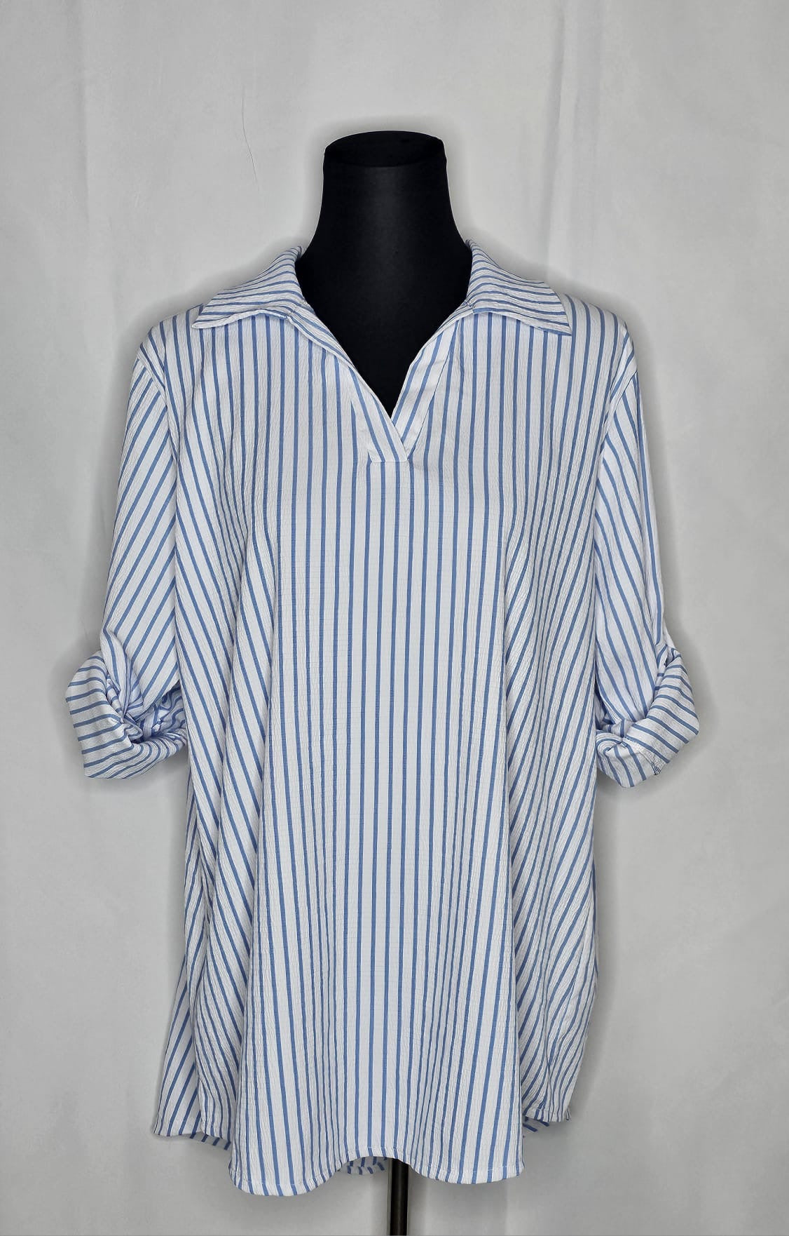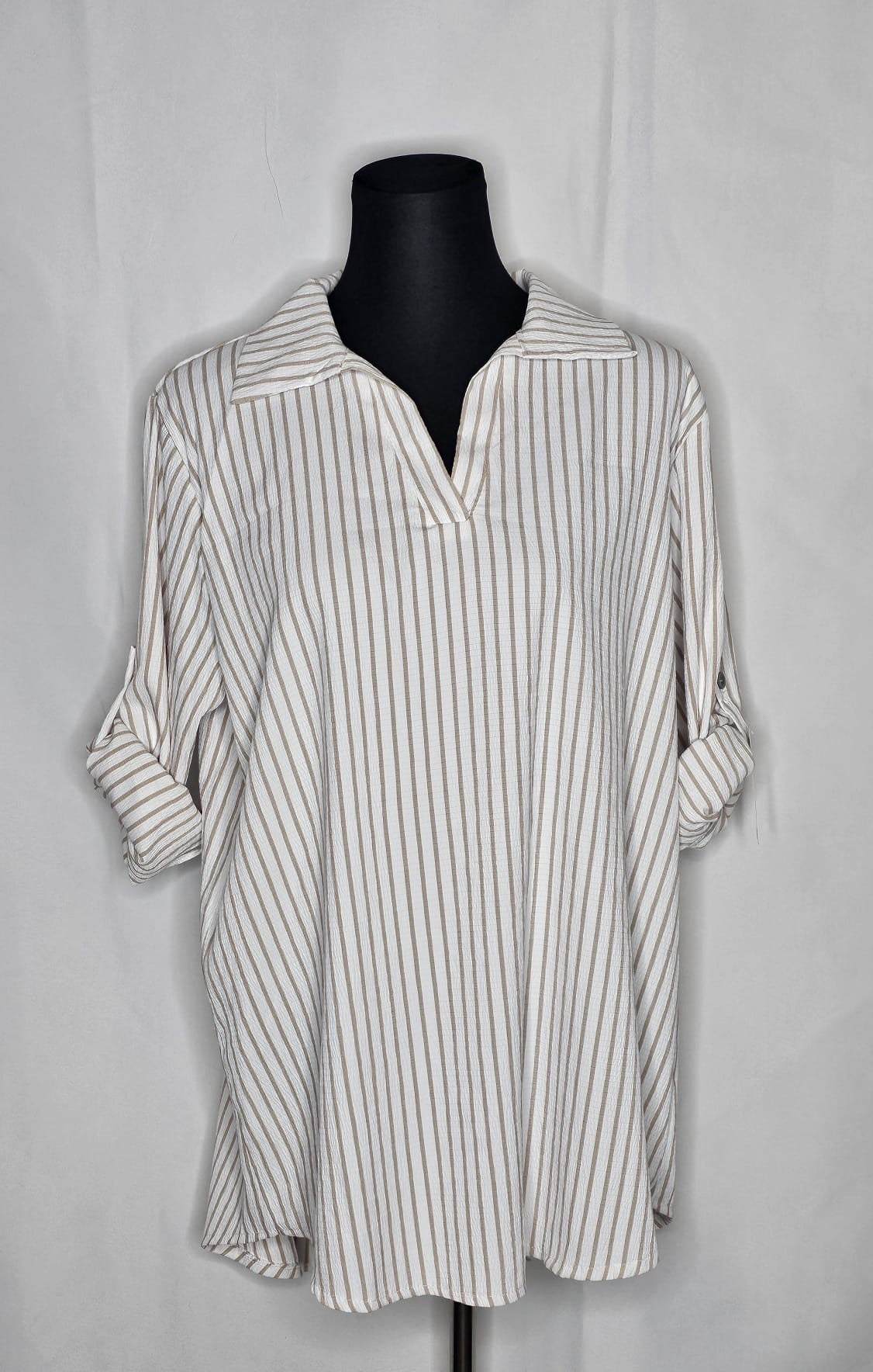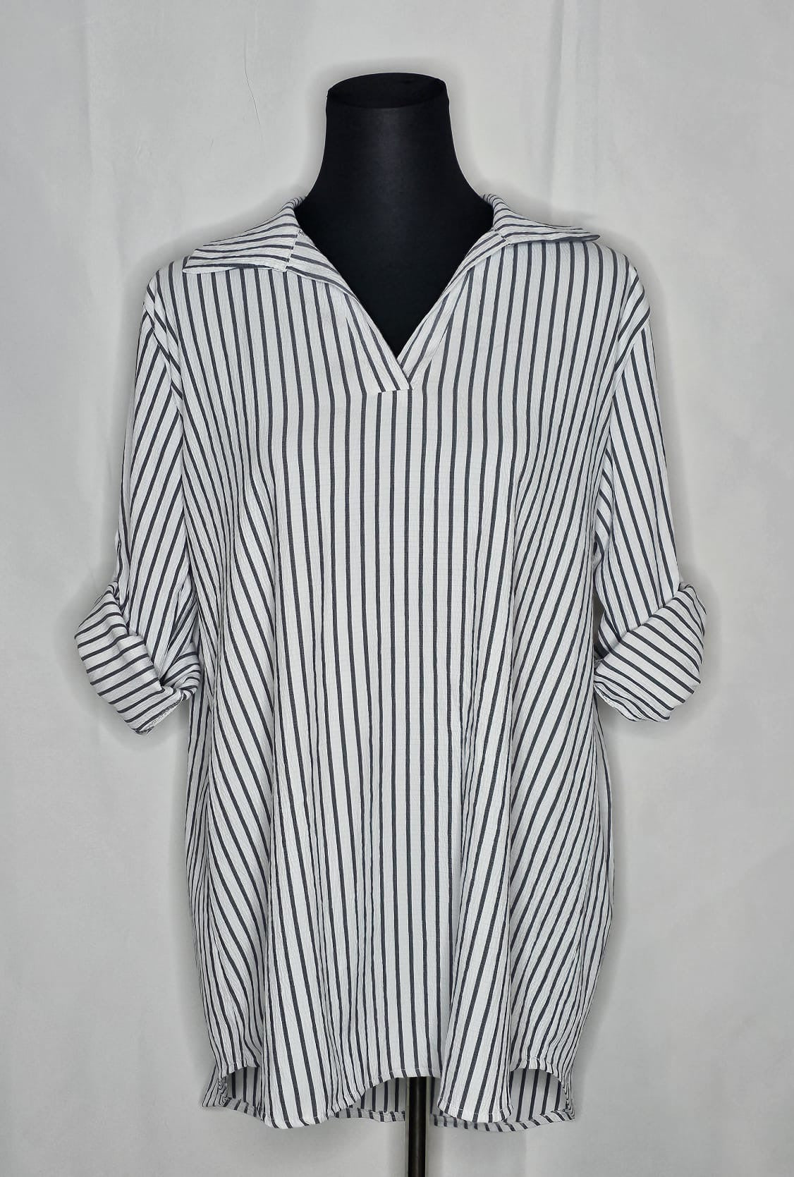 Das Damen Hemd ist  lang  und gestreift, und ist in eine einheitsgroße und tragbar bis größe XL.